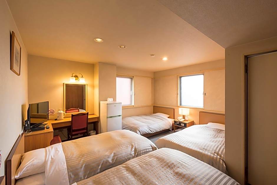 The quadruple room provides air conditioning, tatami, as well as a private bathroom featuring a bath and a shower. The quadruple room offers a wardrobe, an electric kettle, yukata, heating and a flat-screen TV. The unit offers 4 futons.